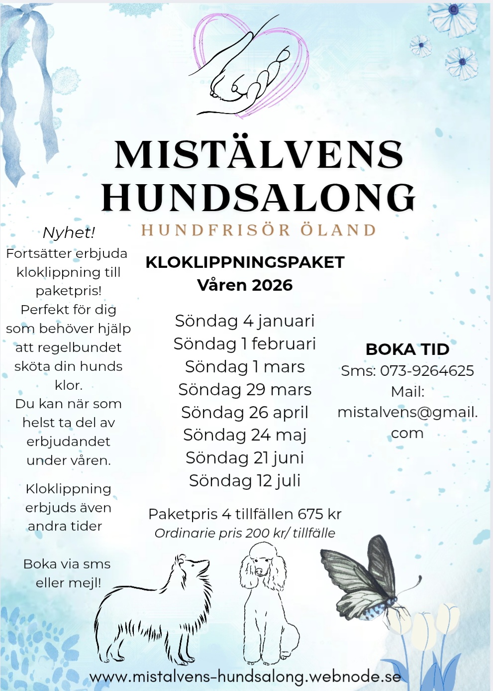 Erbjuder bad, klippning, fällbehandling och kloklipp för alla hundar